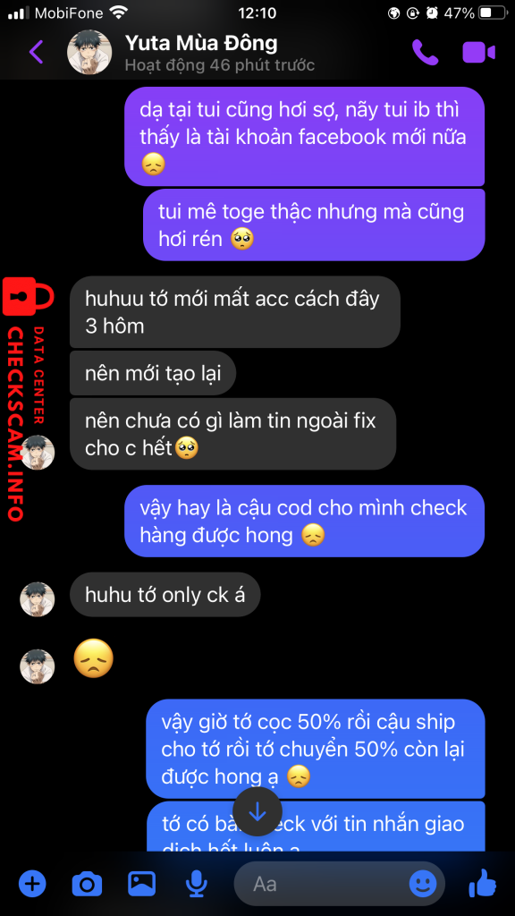 Cảnh báo kẻ lừa đảo: LE MINH THUAN Đã báo cáo: November 16, 2024 Thông tin kẻ lừa đảo Họ và tên: LE MINH THUAN Cổng thanh toán: MB BANK Tài khoản thanh toán: 79777224466 Danh mục: Lừa đảo mua bán Nguồn: Checkscam Tệp bằng chứng Mô tả báo cáo Sau khi chuyển khoản thì block, khoá acc, không có cách liên lạc. Bình luận Bình luận của bạn Thêm bình luận Chưa có bình luận nào. Hãy là người đầu tiên chia sẻ kinh nghiệm của bạn với kẻ lừa đảo này.