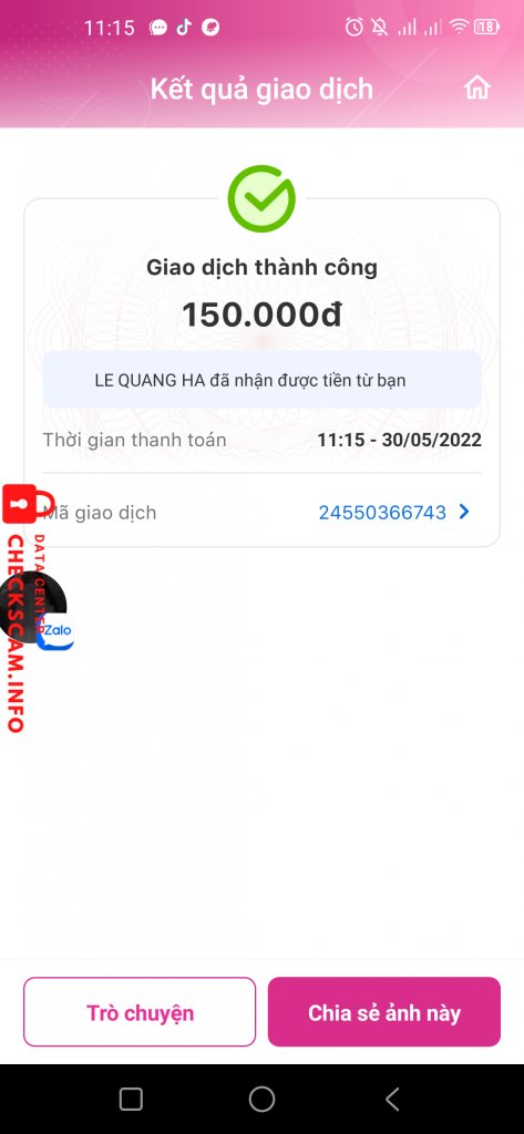 Cảnh báo kẻ lừa đảo: LE QUANG HA