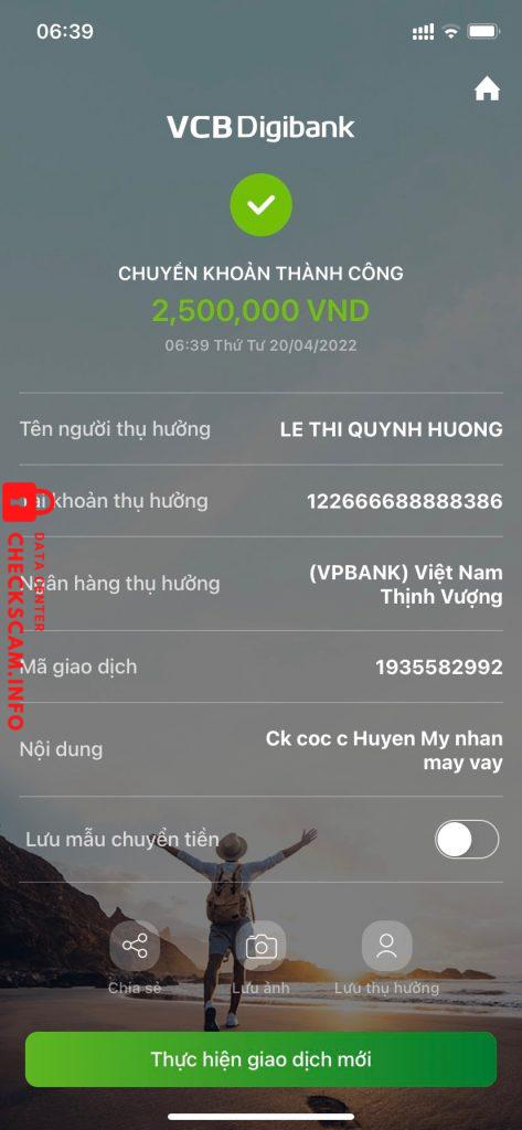 Cảnh báo kẻ lừa đảo: LE THI QUYNH HUONG