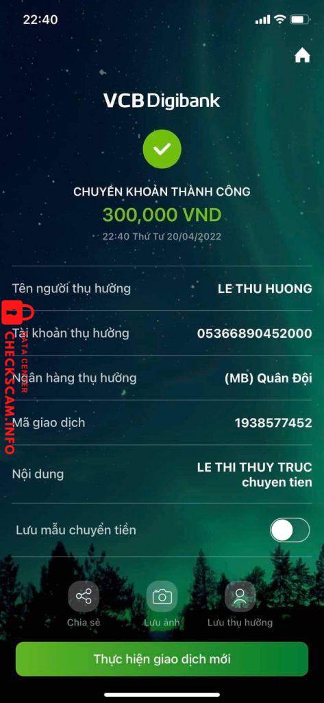 Cảnh báo kẻ lừa đảo: LE THU HUONG