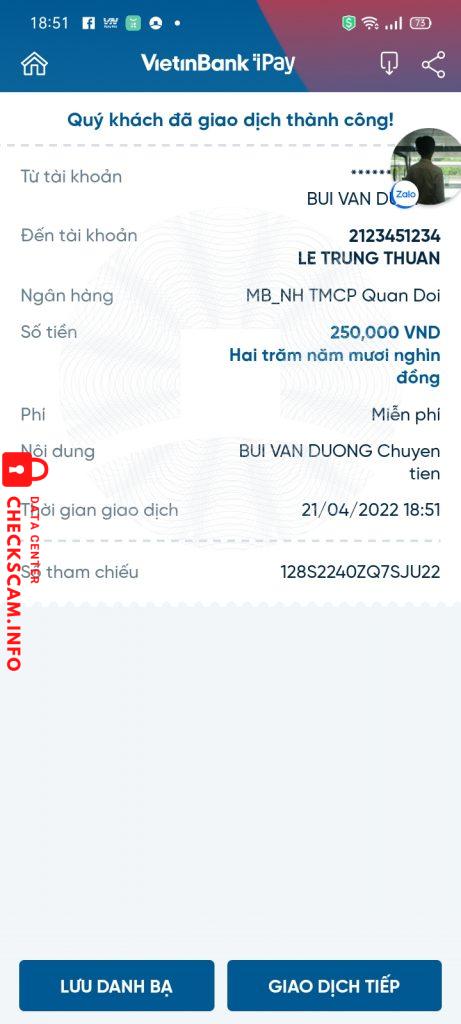 Cảnh báo kẻ lừa đảo: Lê Trung Thuận
