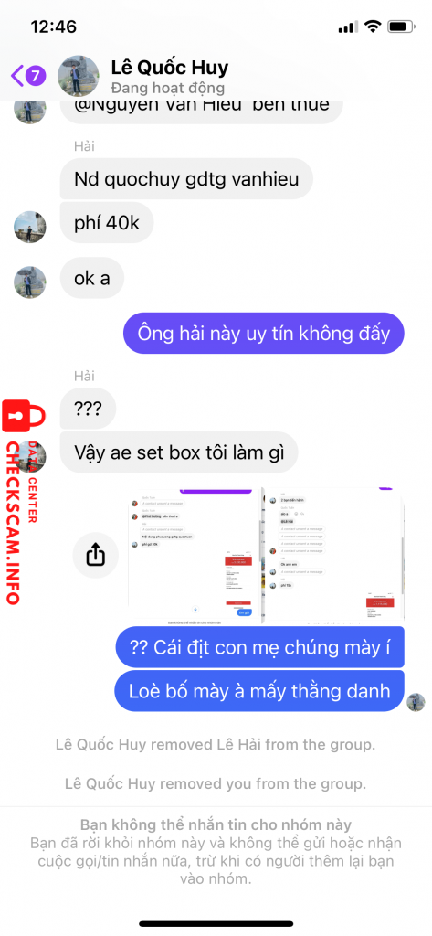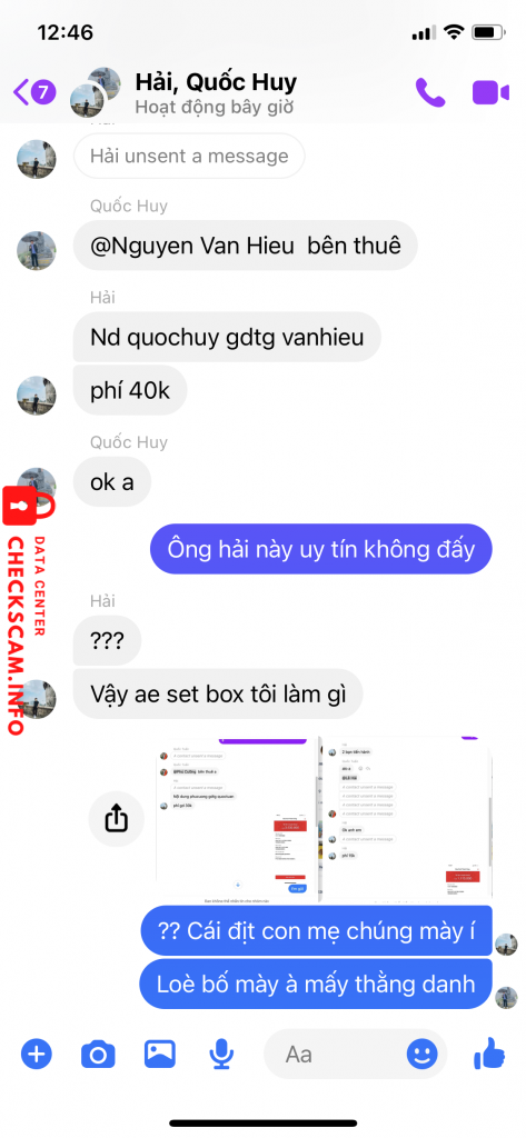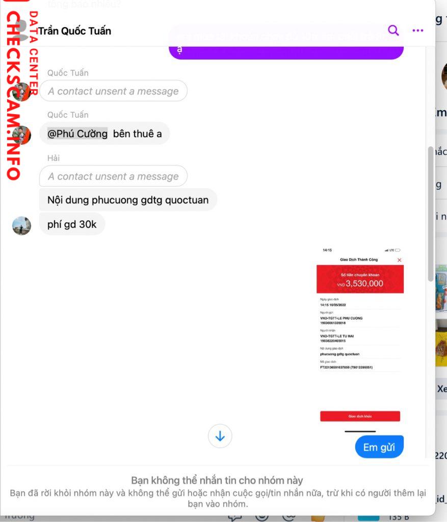 Cảnh báo kẻ lừa đảo: LE TU HAI Đã báo cáo: November 16, 2024 Thông tin kẻ lừa đảo Họ và tên: LE TU HAI Cổng thanh toán: Techcombank Tài khoản thanh toán: 19038220403015 Danh mục: Lừa đảo mua bán Nguồn: Checkscam Tệp bằng chứng Mô tả báo cáo Chủ admin một group social chuyên đi scam có tổ chức Bình luận Bình luận của bạn Thêm bình luận Chưa có bình luận nào. Hãy là người đầu tiên chia sẻ kinh nghiệm của bạn với kẻ lừa đảo này.