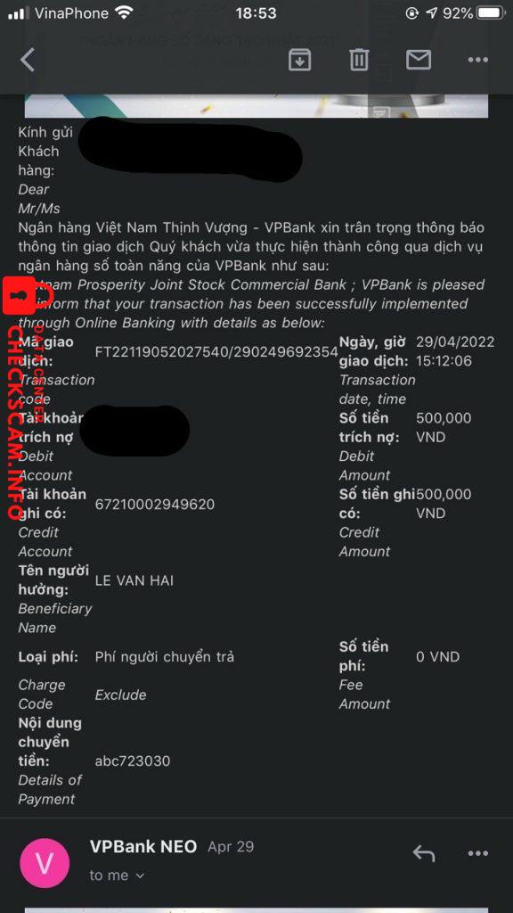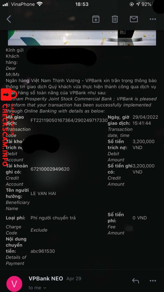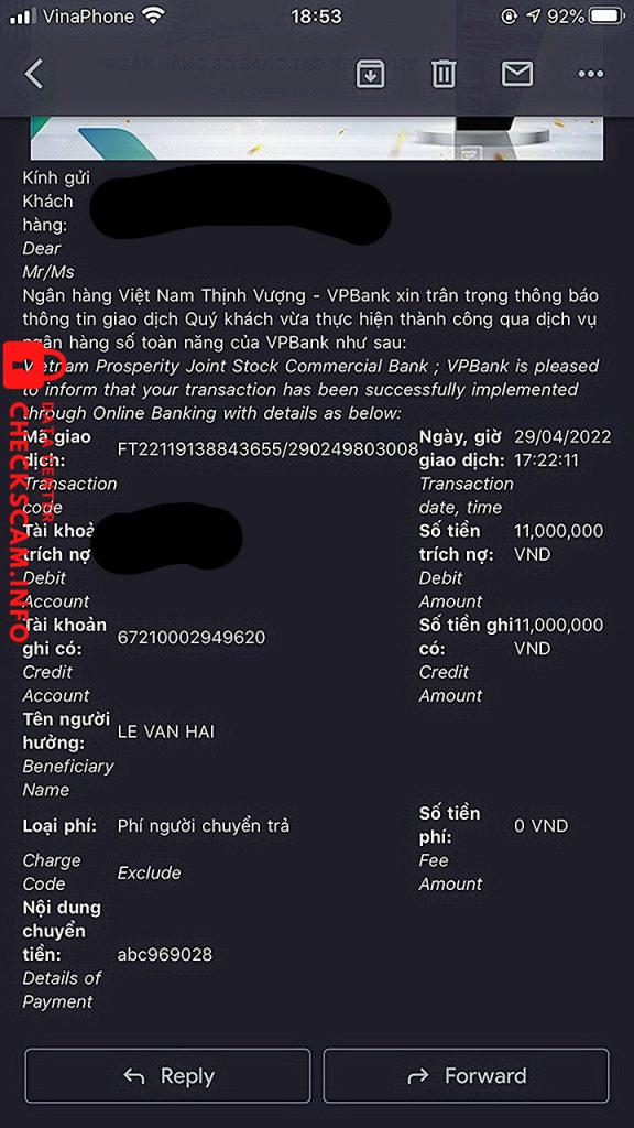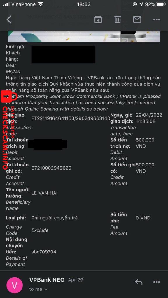 Cảnh báo kẻ lừa đảo: Le Van Hai Đã báo cáo: November 16, 2024 Thông tin kẻ lừa đảo Họ và tên: Le Van Hai Cổng thanh toán: Bidv Tài khoản thanh toán: 67210002949620 Danh mục: Lừa đảo mua bán Nguồn: Checkscam Tệp bằng chứng Mô tả báo cáo Lừa đảo qua Apps Vietlotts. 1 apps giả mạo của Vietlott, thông qua đó đặt lệnh bằng tiền rồi không rút ra được vì họ làm bạn mắc lỗi Bình luận Bình luận của bạn Thêm bình luận Chưa có bình luận nào. Hãy là người đầu tiên chia sẻ kinh nghiệm của bạn với kẻ lừa đảo này.