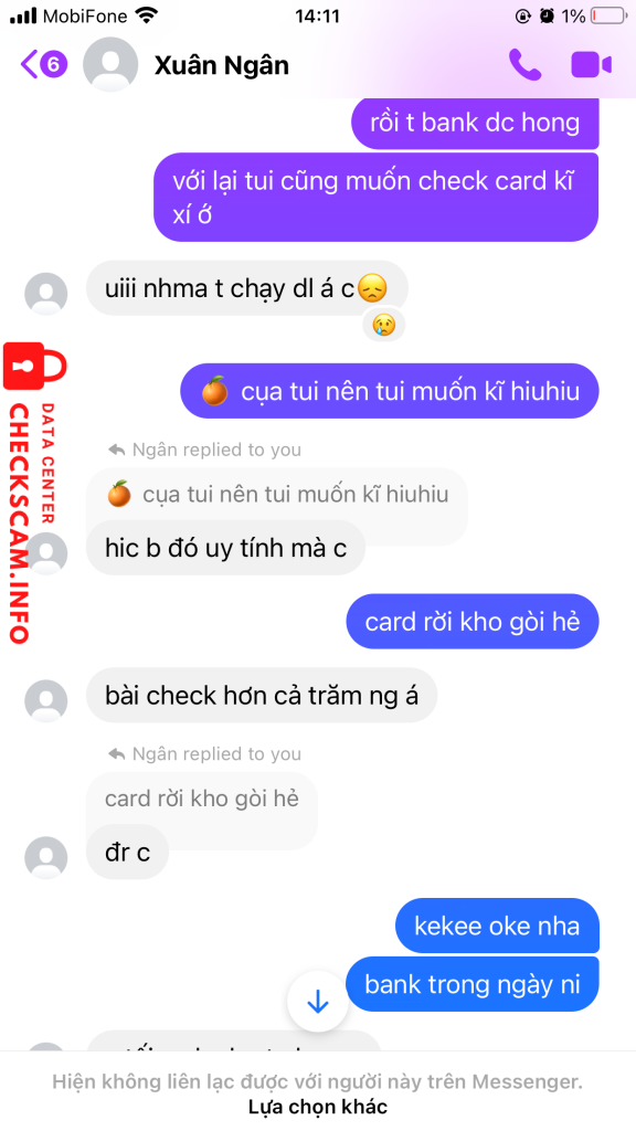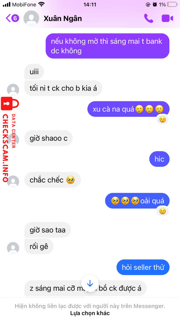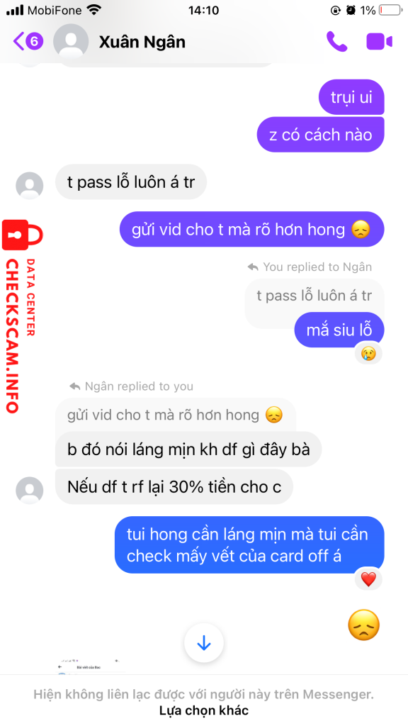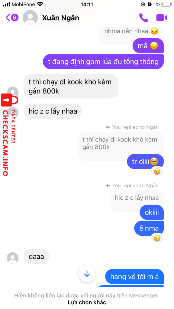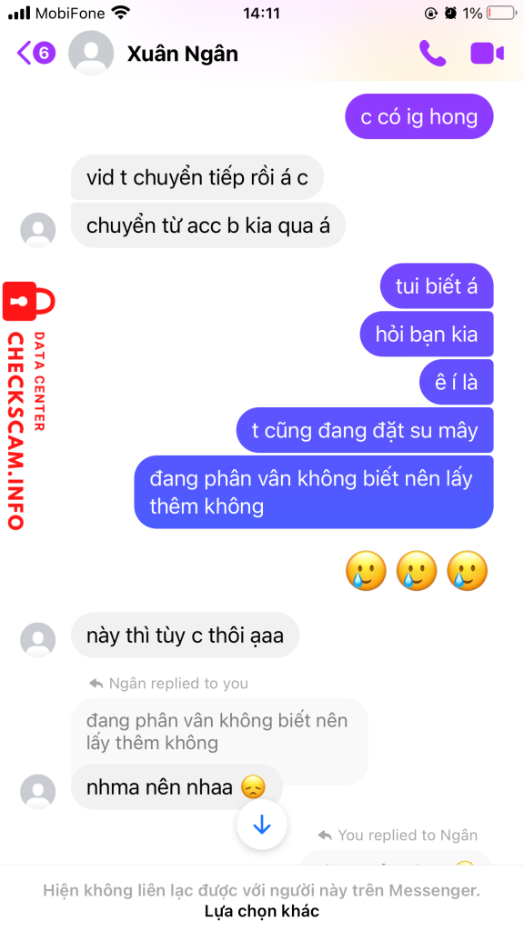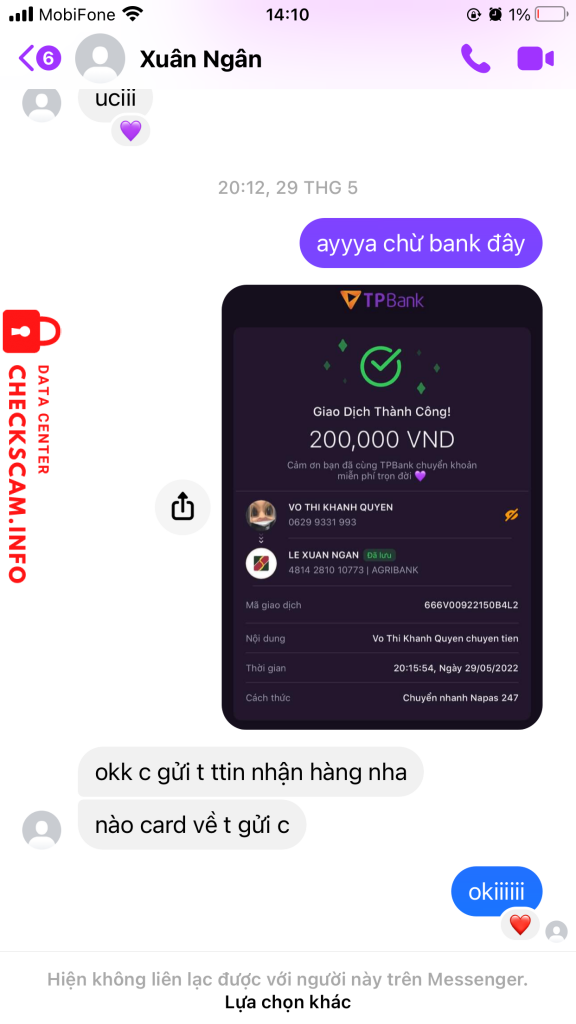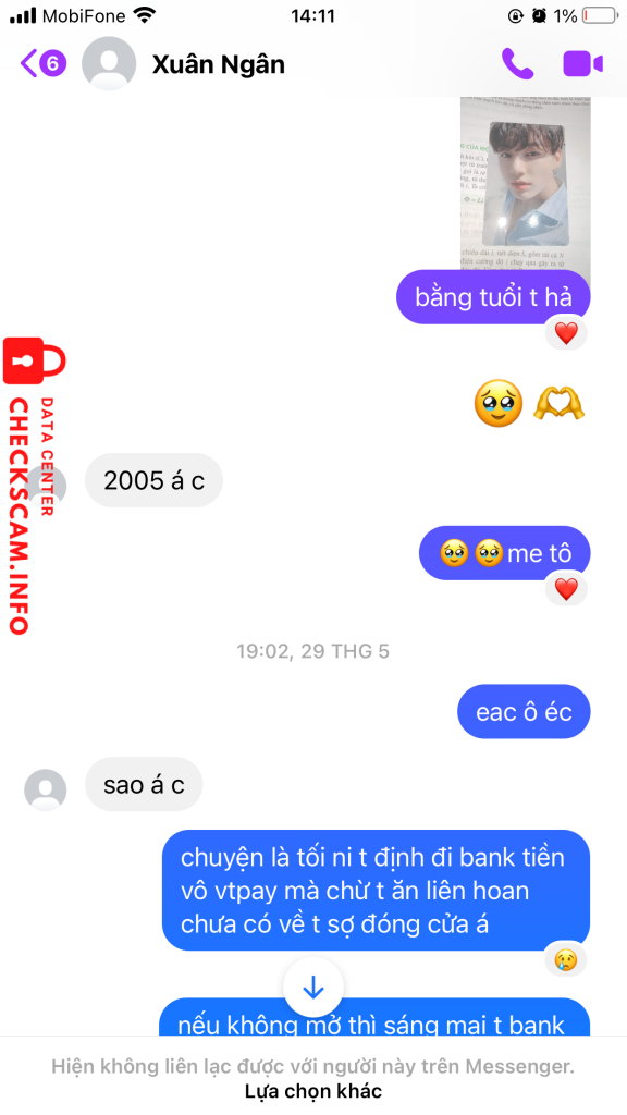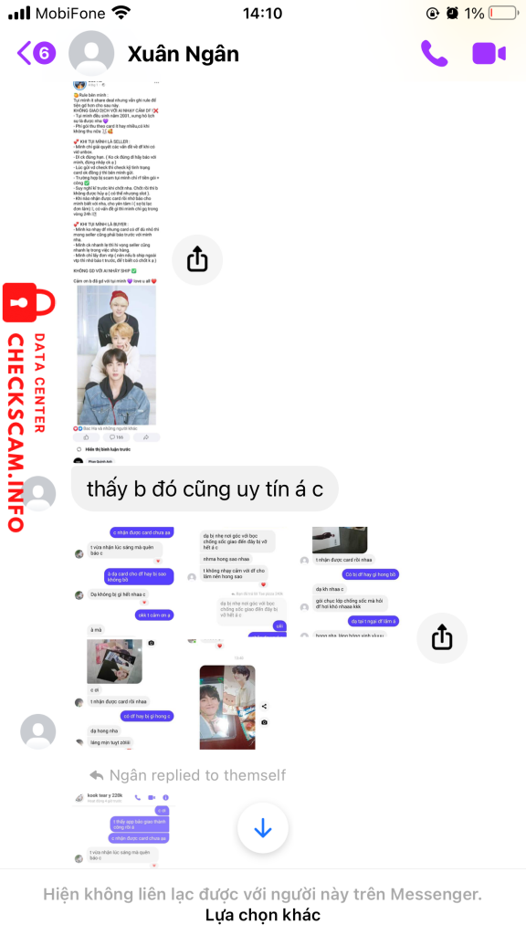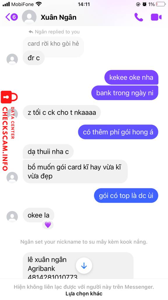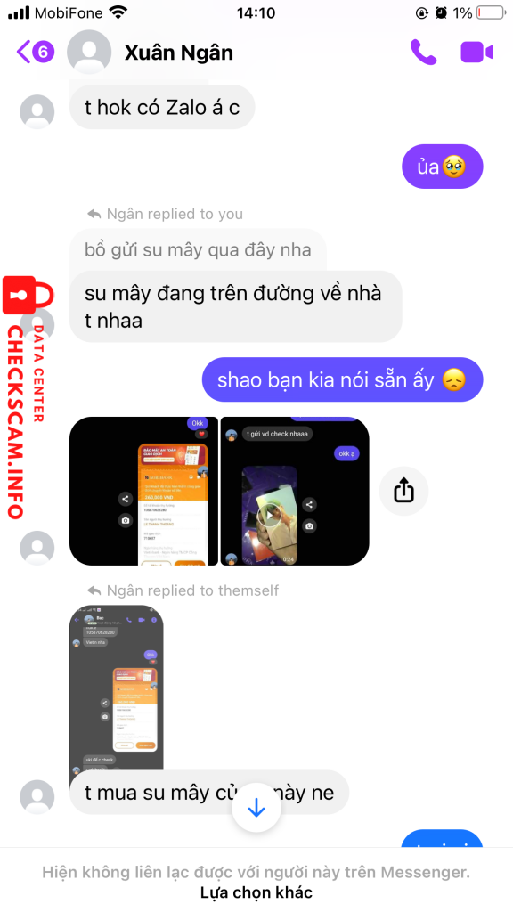 Cảnh báo kẻ lừa đảo: le xuan ngan Đã báo cáo: November 16, 2024 Thông tin kẻ lừa đảo Họ và tên: le xuan ngan Cổng thanh toán: agribank Tài khoản thanh toán: 4814281010773 Danh mục: Lừa đảo mua bán Nguồn: Checkscam Tệp bằng chứng Mô tả báo cáo scam su mây kèm kook nắng Bình luận Bình luận của bạn Thêm bình luận Chưa có bình luận nào. Hãy là người đầu tiên chia sẻ kinh nghiệm của bạn với kẻ lừa đảo này.