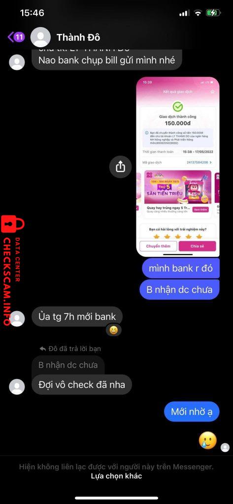 Cảnh báo kẻ lừa đảo: LY THANH DO Đã báo cáo: November 16, 2024 Thông tin kẻ lừa đảo Họ và tên: LY THANH DO Cổng thanh toán: Agribank Tài khoản thanh toán: 80008205028592 Danh mục: Lừa đảo mua bán Nguồn: Checkscam Tệp bằng chứng Mô tả báo cáo Lừa tiền cọc liên quân của ctv Bình luận Bình luận của bạn Thêm bình luận Chưa có bình luận nào. Hãy là người đầu tiên chia sẻ kinh nghiệm của bạn với kẻ lừa đảo này.