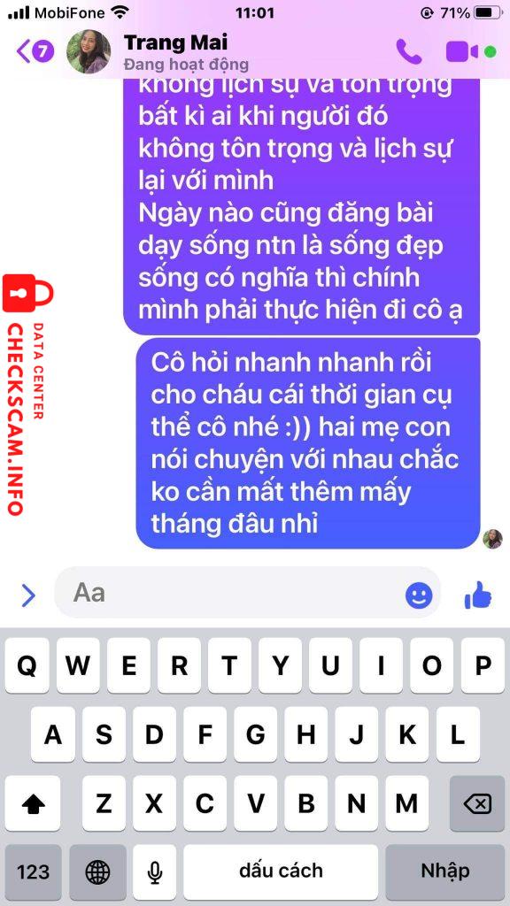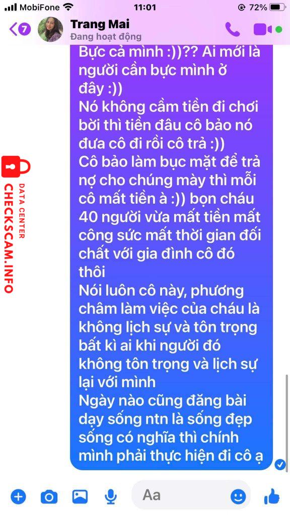 Cảnh báo kẻ lừa đảo: Mai Thi Trang Đã báo cáo: November 16, 2024 Thông tin kẻ lừa đảo Họ và tên: Mai Thi Trang Cổng thanh toán: Vietcombank Tài khoản thanh toán: 0351000871074 Danh mục: Lừa đảo mua bán Nguồn: Checkscam Tệp bằng chứng Mô tả báo cáo Scammer Mai Anh dùng tài khoản của mẹ là Mai Thị Trang đi lừa đảo. Nhắn tin cho cả mẹ và con đều không được giải quyết và trốn tránh trách nhiệm Bình luận Bình luận của bạn Thêm bình luận Chưa có bình luận nào. Hãy là người đầu tiên chia sẻ kinh nghiệm của bạn với kẻ lừa đảo này.