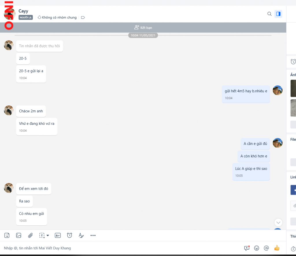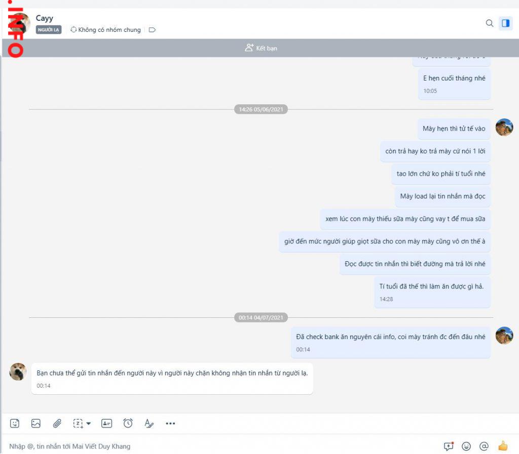Lợi dụng mqh quen dần dần xong đi mượn tiền rồi biện cớ lí do này kia để Scam, lúc mình phát hiện ra Scam là thấy nhiều phốt trên FB rồi, Search từ khóa “Mai Viết Duy Khang” trong giới mmo là ra cả đống lừa đảo rồi. Hi vọng AE nào có info thì cho mình xin địa chỉ cụ thể với ạ