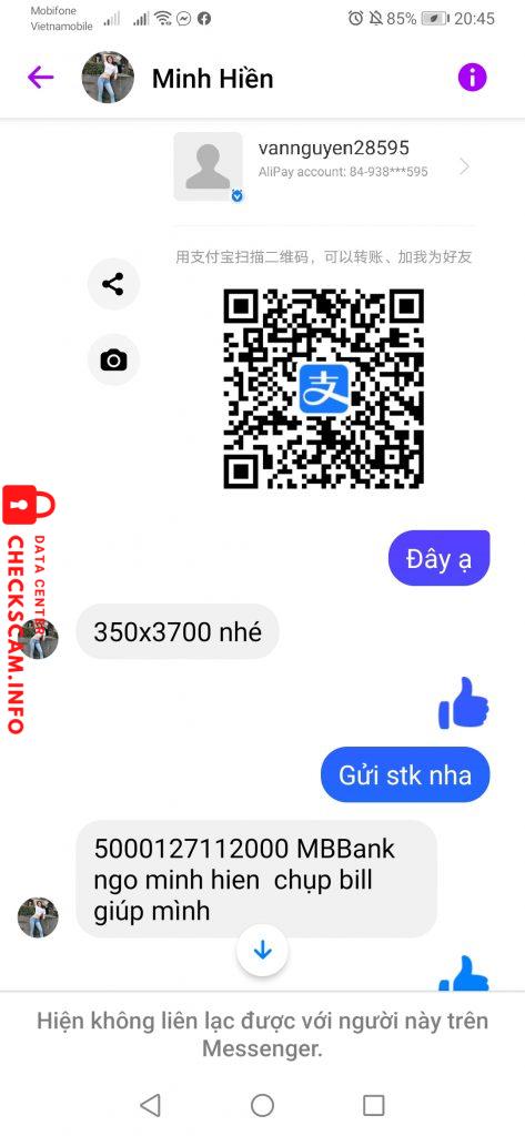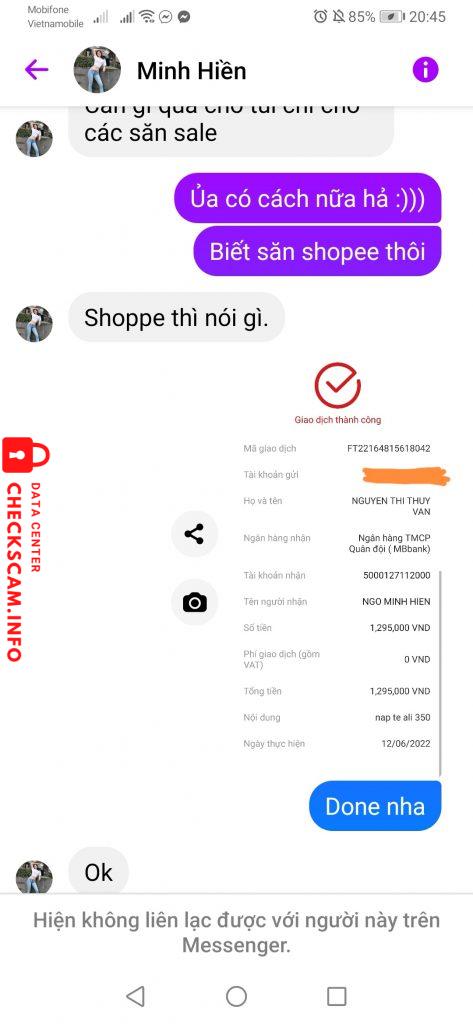 Mình đăng lên để cảnh báo những ai sắp tới giao dịch với nó nhé. TÊN HỌ ĐẦY ĐỦ: NGÔ MINH HIỀN – stk: 5000127112000 – MBBank – NGO MINH HIEN