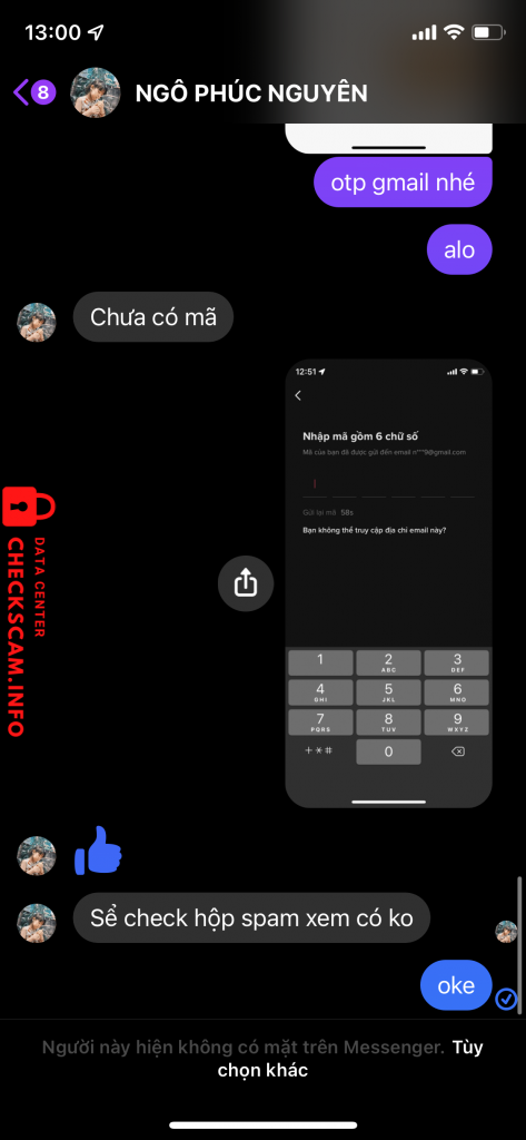 Cảnh báo kẻ lừa đảo: NGÔ PHÚC NGUYÊN Đã báo cáo: November 16, 2024 Thông tin kẻ lừa đảo Họ và tên: NGÔ PHÚC NGUYÊN Cổng thanh toán: MB Tài khoản thanh toán: 112179699999 Danh mục: Lừa đảo mua bán Nguồn: Checkscam Tệp bằng chứng Mô tả báo cáo bán ních tiktok lừa đảo chuyển tiền trước Bình luận Bình luận của bạn Thêm bình luận Chưa có bình luận nào. Hãy là người đầu tiên chia sẻ kinh nghiệm của bạn với kẻ lừa đảo này.
