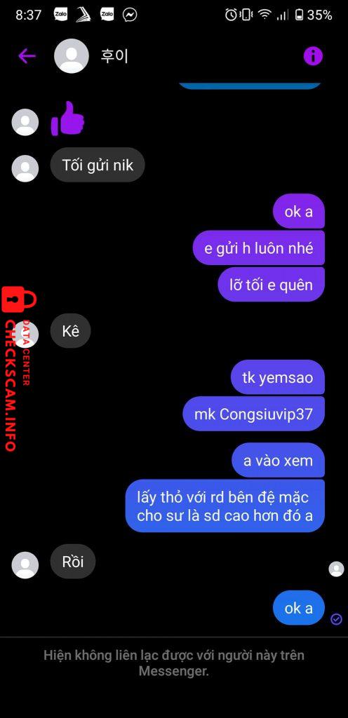 Cảnh báo kẻ lừa đảo: NGO QUANG HUY Đã báo cáo: November 16, 2024 Thông tin kẻ lừa đảo Họ và tên: NGO QUANG HUY Cổng thanh toán: VPBANK Tài khoản thanh toán: 33026102001 Danh mục: Lừa đảo mua bán Nguồn: Checkscam Tệp bằng chứng Mô tả báo cáo Lừa đảo tất nhiều người ở game nro blue tôi bị ld 160k và mất acc tổng giá trị trên 1tr Bình luận Bình luận của bạn Thêm bình luận Chưa có bình luận nào. Hãy là người đầu tiên chia sẻ kinh nghiệm của bạn với kẻ lừa đảo này.