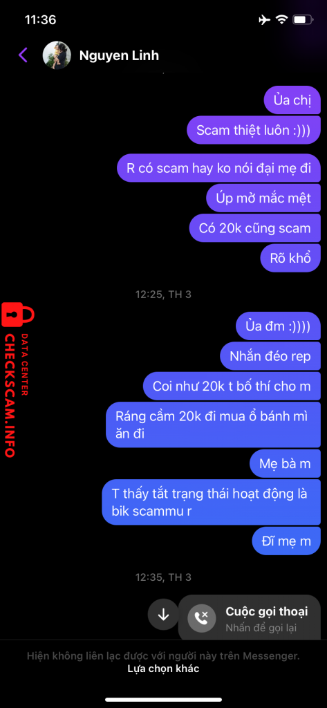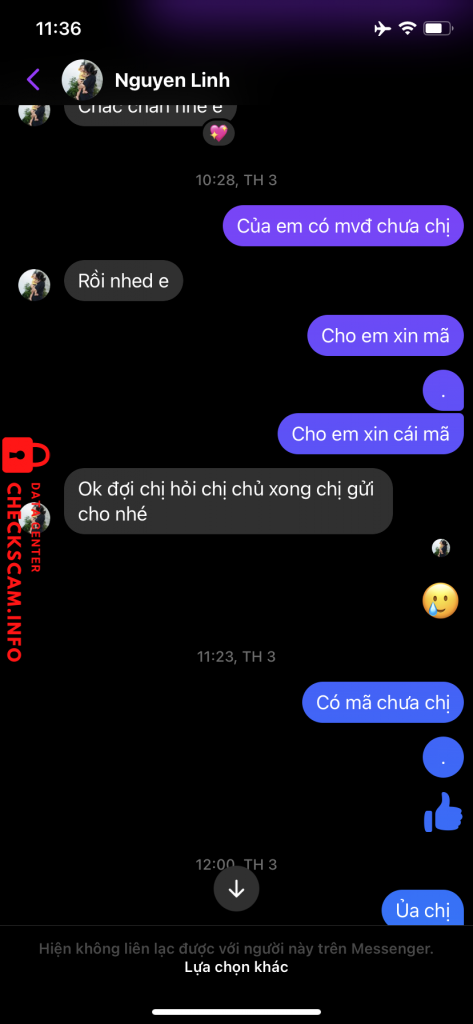 Cảnh báo kẻ lừa đảo: NGO THI HUONG Đã báo cáo: November 16, 2024 Thông tin kẻ lừa đảo Họ và tên: NGO THI HUONG Cổng thanh toán: MB BANK Tài khoản thanh toán: 088143188888 Danh mục: Lừa đảo mua bán Nguồn: Checkscam Tệp bằng chứng Mô tả báo cáo Lừa tiền truyện 20k xong rồi block Bình luận Bình luận của bạn Thêm bình luận Chưa có bình luận nào. Hãy là người đầu tiên chia sẻ kinh nghiệm của bạn với kẻ lừa đảo này.