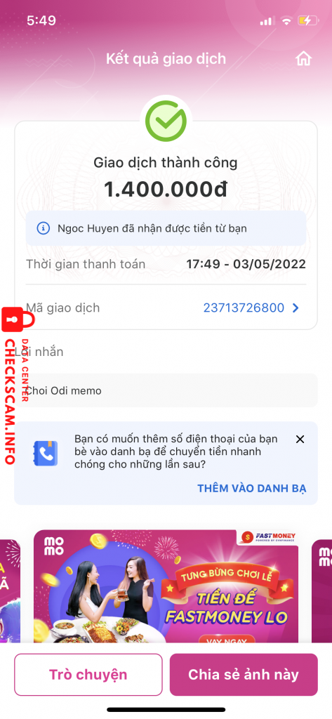 Bạn này scam mình 1tr4 ạ, trước khi giao dịch không kiểm tra kĩ, có lên web tra thử thì chưa bị bắt lần nào. Tối nay quay lại đã thấy bạn biến mất khỏi fb, không tìm thấy tài khoản