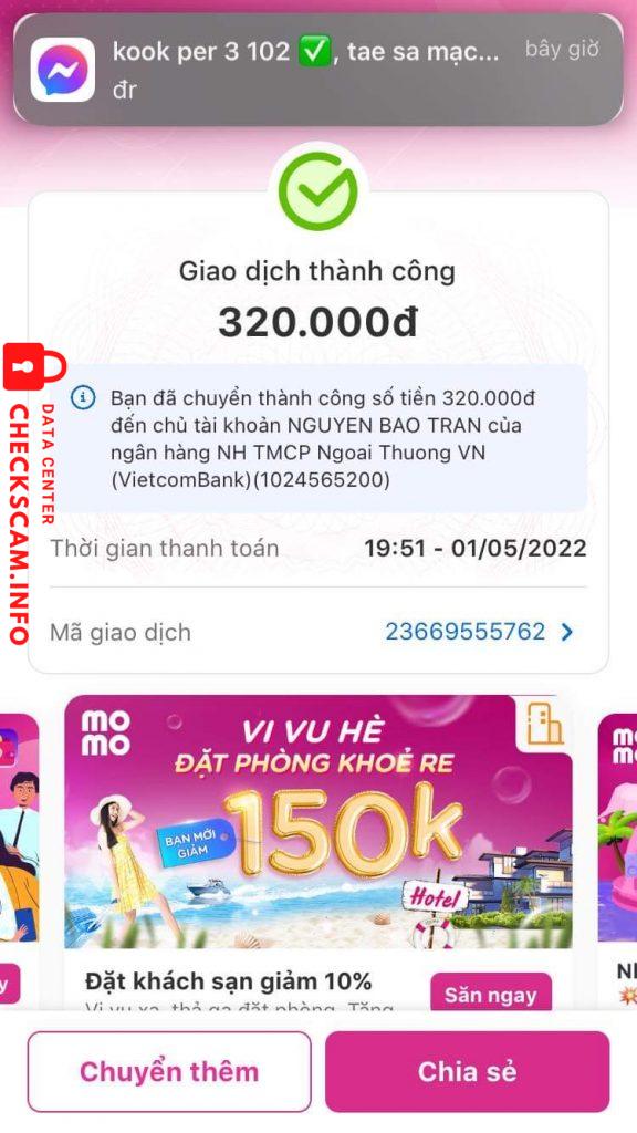 Cảnh báo kẻ lừa đảo: Nguyen bao tran Đã báo cáo: November 16, 2024 Thông tin kẻ lừa đảo Họ và tên: Nguyen bao tran Cổng thanh toán: Vietcombank Tài khoản thanh toán: 040108655129 Danh mục: Lừa đảo mua bán Nguồn: Checkscam Tệp bằng chứng Mô tả báo cáo Ck xong block ko ship card Bình luận Bình luận của bạn Thêm bình luận Chưa có bình luận nào. Hãy là người đầu tiên chia sẻ kinh nghiệm của bạn với kẻ lừa đảo này.