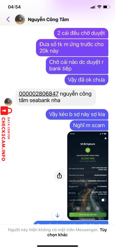 Cảnh báo kẻ lừa đảo: Nguyễn Công Tâm Đã báo cáo: November 16, 2024 Thông tin kẻ lừa đảo Họ và tên: Nguyễn Công Tâm Cổng thanh toán: seabank Tài khoản thanh toán: 000002806847 Danh mục: Lừa đảo mua bán Nguồn: Checkscam Tệp bằng chứng Mô tả báo cáo kyc app smartpay. ứng tiền rồi làm không xong chặn luôn Bình luận Bình luận của bạn Thêm bình luận Chưa có bình luận nào. Hãy là người đầu tiên chia sẻ kinh nghiệm của bạn với kẻ lừa đảo này.