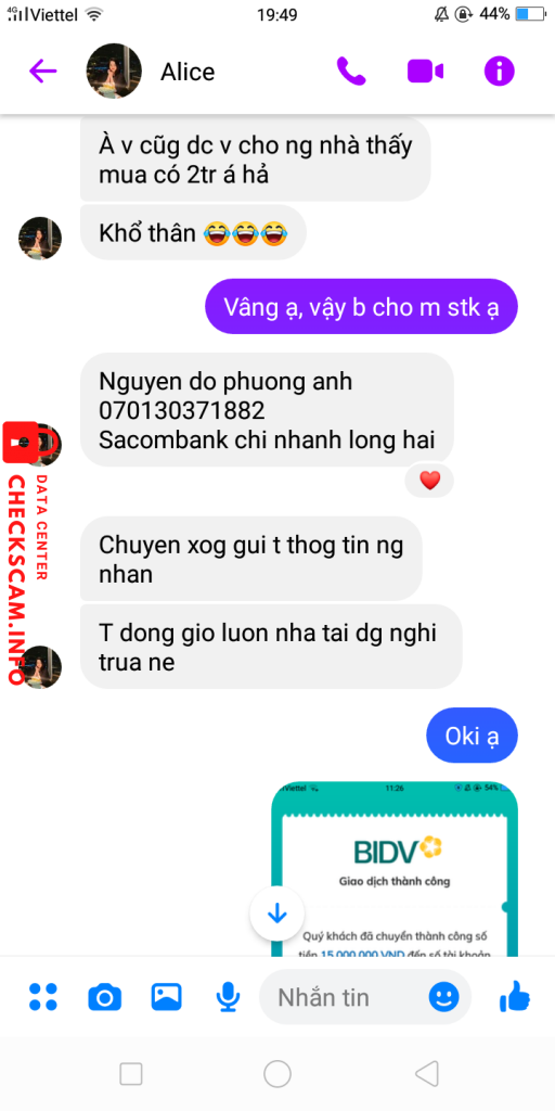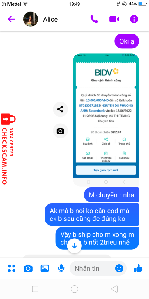 Cảnh báo kẻ lừa đảo: nguyen do phuong anh
