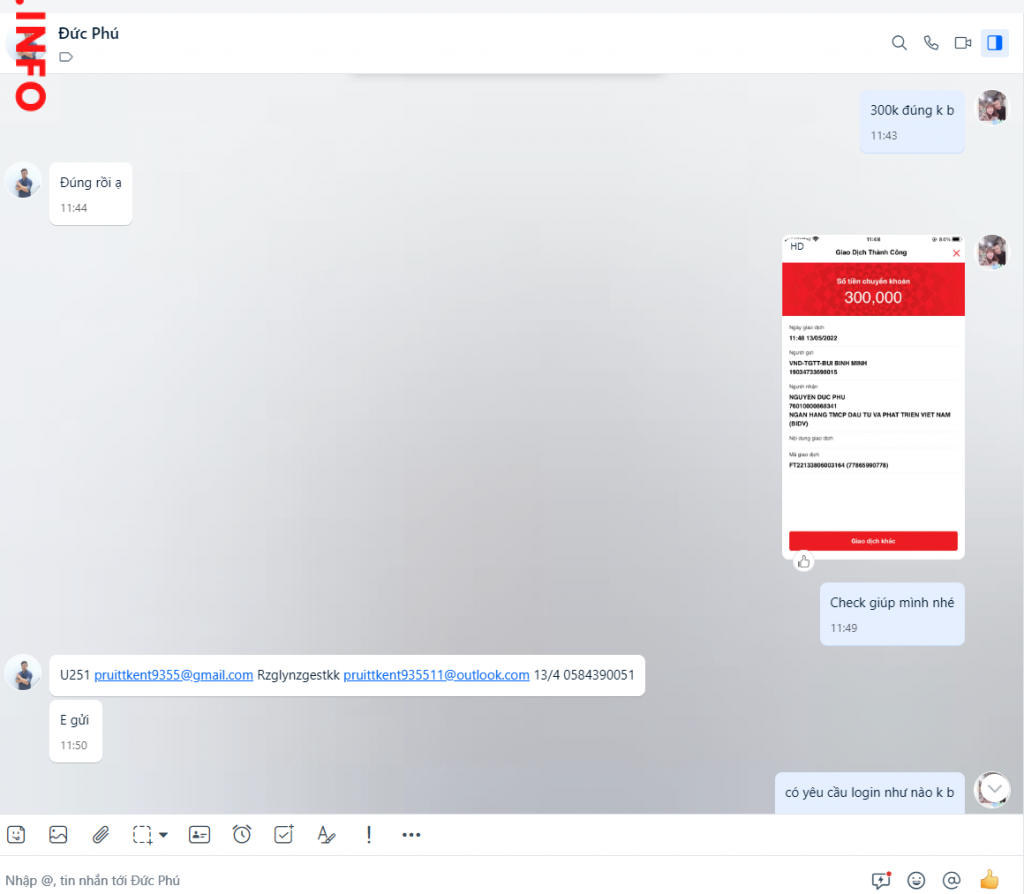 Cảnh báo kẻ lừa đảo: Nguyễn Đức Phú Đã báo cáo: November 16, 2024 Thông tin kẻ lừa đảo Họ và tên: Nguyễn Đức Phú Cổng thanh toán: BIDV Tài khoản thanh toán: 76010000868341 Danh mục: Lừa đảo mua bán Nguồn: Checkscam Tệp bằng chứng Mô tả báo cáo Bán tk bao login nhưng giao toàn tài khoản chết. Kêu 2-3 hôm nữa gửi con khác thì mất tích. Ntin thì đã xem nhưng không trả lời Bình luận Bình luận của bạn Thêm bình luận Chưa có bình luận nào. Hãy là người đầu tiên chia sẻ kinh nghiệm của bạn với kẻ lừa đảo này.
