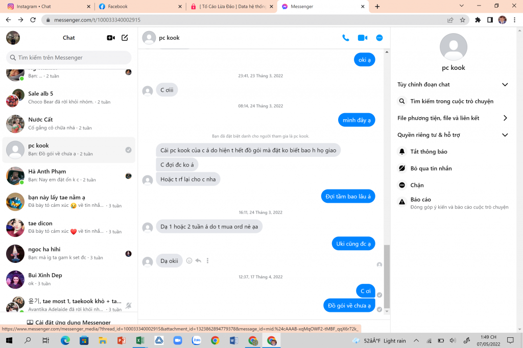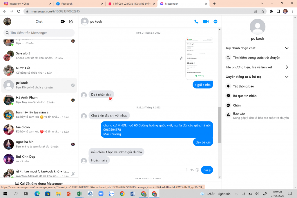 tôi mua postcard của bạn này, ck đúng dl. Sau khi ck, bạn bảo chiều bạn gửi, mấy hôm sau bạn lại báo thiếu đồ gói đợi đồ gói ề hoặc rf tiền. tôi cũng ngu không chọn rf tiền. mấy ngày sau tôi hỏi thì không seen, đến hôm nay nhớ ra check lại thì đã bị block