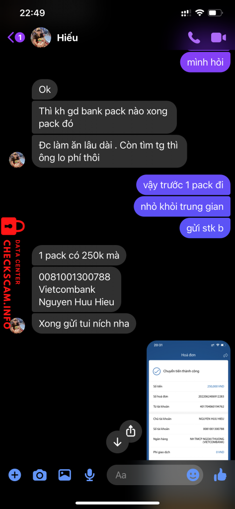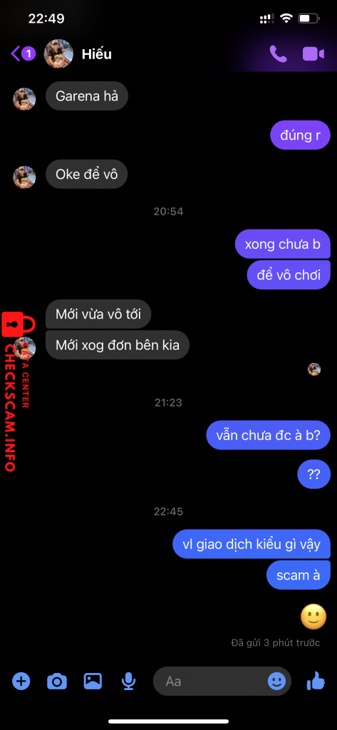 Cảnh báo kẻ lừa đảo: Nguyen Huu Hieu Đã báo cáo: November 16, 2024 Thông tin kẻ lừa đảo Họ và tên: Nguyen Huu Hieu Cổng thanh toán: Vietcombank Tài khoản thanh toán: 0081001300788 Danh mục: Lừa đảo mua bán Nguồn: Checkscam Tệp bằng chứng Mô tả báo cáo Lừa nạp Game giá rẻ Bình luận Bình luận của bạn Thêm bình luận Chưa có bình luận nào. Hãy là người đầu tiên chia sẻ kinh nghiệm của bạn với kẻ lừa đảo này.