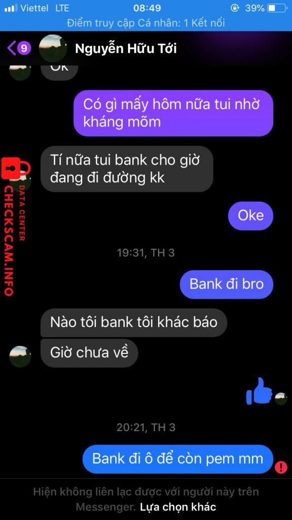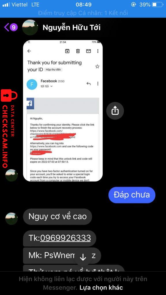 Tôi có thuê người này qua group facebook để mở khóa facebook của tôi , sau khi tôi chuyển cọc 1/3 số tiền , 3 ngày sau acc không về , tôi có nhắn tin đòi lại tiền cọc như thỏa thuận , người này đã khất nhiều lần và đã chặn tôi