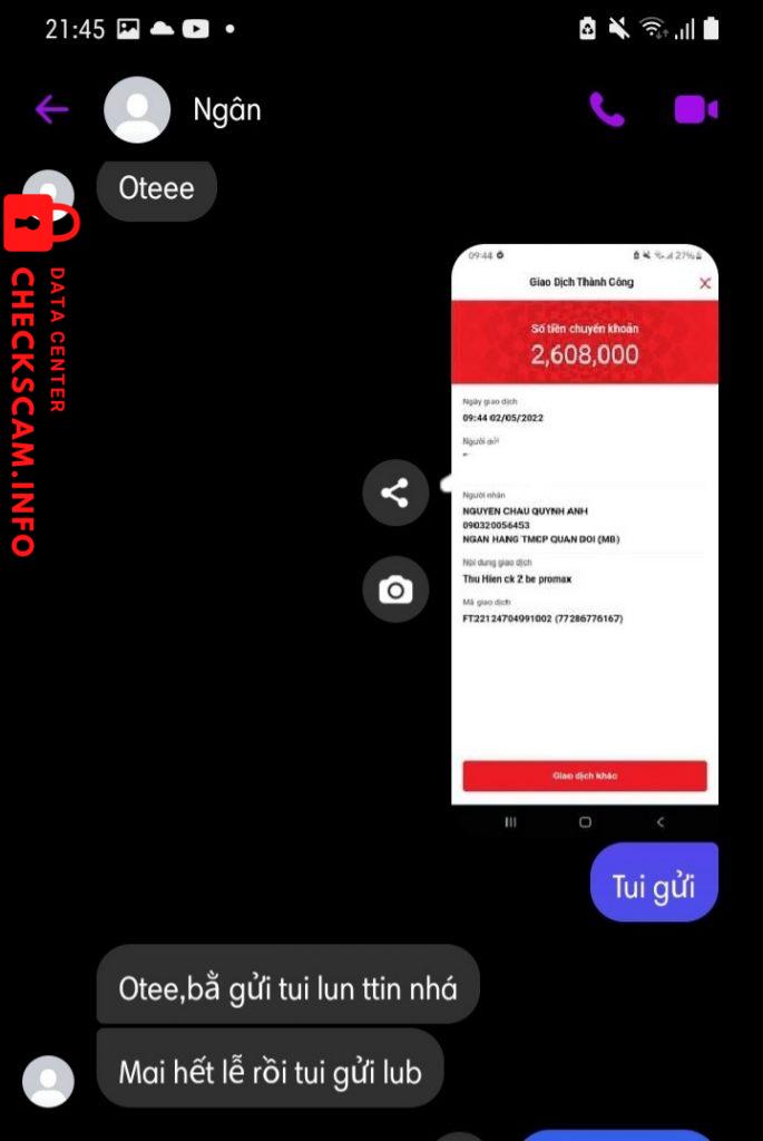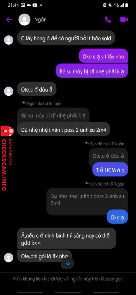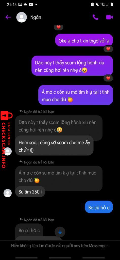 Cảnh báo kẻ lừa đảo: Nguyễn Lệ San Đã báo cáo: November 16, 2024 Thông tin kẻ lừa đảo Họ và tên: Nguyễn Lệ San Cổng thanh toán: Momo Tài khoản thanh toán: 0987539325 Danh mục: Lừa đảo mua bán Nguồn: Checkscam Tệp bằng chứng Mô tả báo cáo Scam Bình luận Bình luận của bạn Thêm bình luận Chưa có bình luận nào. Hãy là người đầu tiên chia sẻ kinh nghiệm của bạn với kẻ lừa đảo này.