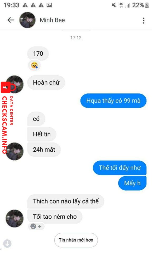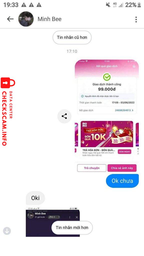 Cảnh báo kẻ lừa đảo: Nguyễn Minh Đã báo cáo: November 16, 2024 Thông tin kẻ lừa đảo Họ và tên: Nguyễn Minh Cổng thanh toán: Momo Tài khoản thanh toán: 0399137654 Danh mục: Lừa đảo mua bán Nguồn: Checkscam Tệp bằng chứng Mô tả báo cáo Lừa đảo mua bán acc free fire Bình luận Bình luận của bạn Thêm bình luận Chưa có bình luận nào. Hãy là người đầu tiên chia sẻ kinh nghiệm của bạn với kẻ lừa đảo này.