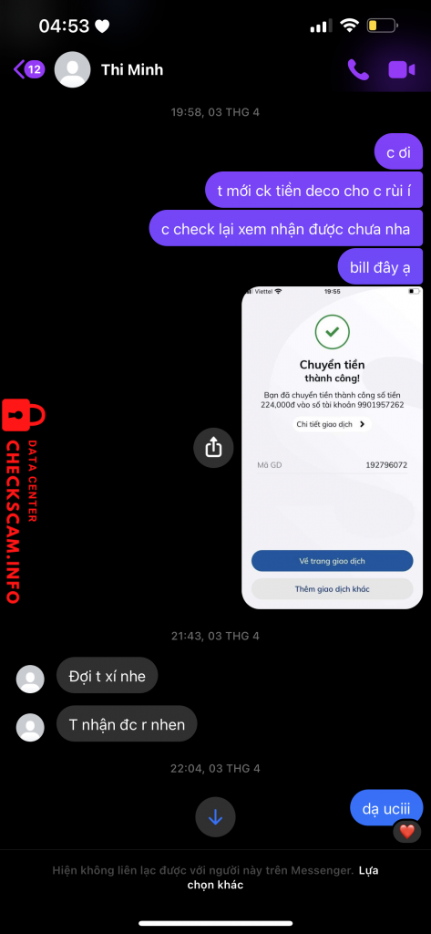 Cảnh báo kẻ lừa đảo: Nguyen Ngoc Khanh Nhu Đã báo cáo: November 16, 2024 Thông tin kẻ lừa đảo Họ và tên: Nguyen Ngoc Khanh Nhu Cổng thanh toán: Vietcombank Tài khoản thanh toán: 9901957262 Danh mục: Lừa đảo mua bán Nguồn: Checkscam Tệp bằng chứng Mô tả báo cáo share deco kit xong scam Bình luận Bình luận của bạn Thêm bình luận Chưa có bình luận nào. Hãy là người đầu tiên chia sẻ kinh nghiệm của bạn với kẻ lừa đảo này.