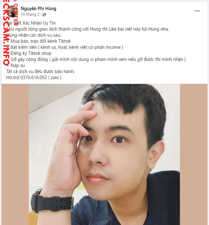 Cảnh báo kẻ lừa đảo: Nguyen Phi Hung