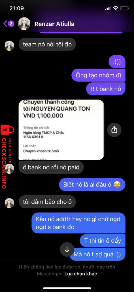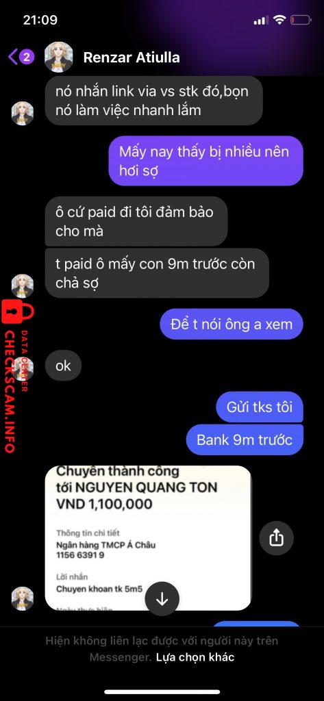 Cảnh báo kẻ lừa đảo: NGUYEN QUANG TON Đã báo cáo: November 16, 2024 Thông tin kẻ lừa đảo Họ và tên: NGUYEN QUANG TON Cổng thanh toán: ACB Tài khoản thanh toán: 115663919 Danh mục: Lừa đảo mua bán Nguồn: Checkscam Tệp bằng chứng Mô tả báo cáo nhận paid được 4 lần xong lần thứ 5 scam. nghi nó là 1 người. 1m8 với con tkqc 9m Bình luận Bình luận của bạn Thêm bình luận Chưa có bình luận nào. Hãy là người đầu tiên chia sẻ kinh nghiệm của bạn với kẻ lừa đảo này.
