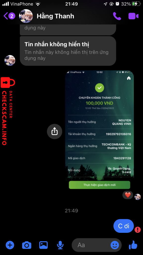 Cảnh báo kẻ lừa đảo: NGUYEN QUANG VINH