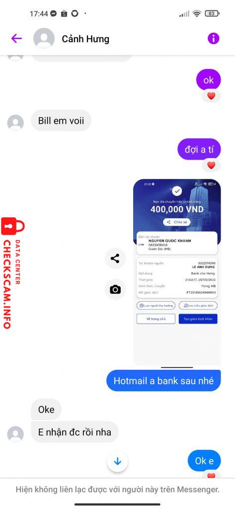 Cảnh báo kẻ lừa đảo: Nguyễn Quốc Khánh