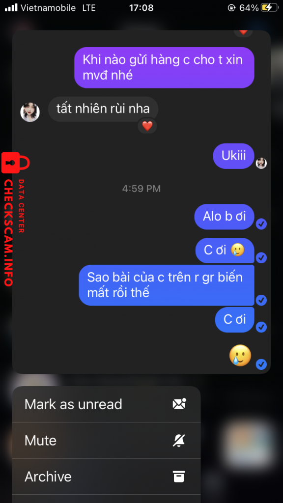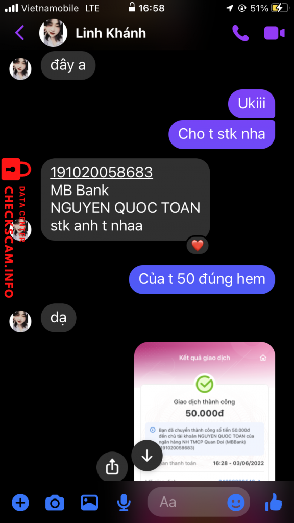 Cảnh báo kẻ lừa đảo: Nguyen Quoc Toan Đã báo cáo: November 16, 2024 Thông tin kẻ lừa đảo Họ và tên: Nguyen Quoc Toan Cổng thanh toán: MB BANK Tài khoản thanh toán: 191020058683 Danh mục: Lừa đảo mua bán Nguồn: Checkscam Tệp bằng chứng Mô tả báo cáo Up bài buôn bán trên group của Super Junior, sau khi mọi người chuyển khảon thì khoá bài. 1 card pass cho nhiều người. Bình luận Bình luận của bạn Thêm bình luận Chưa có bình luận nào. Hãy là người đầu tiên chia sẻ kinh nghiệm của bạn với kẻ lừa đảo này.