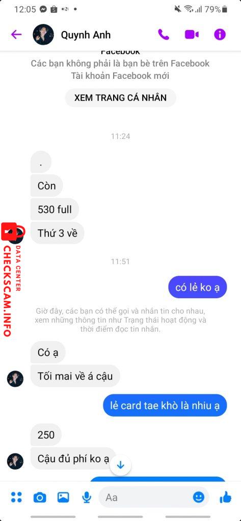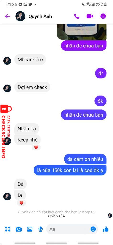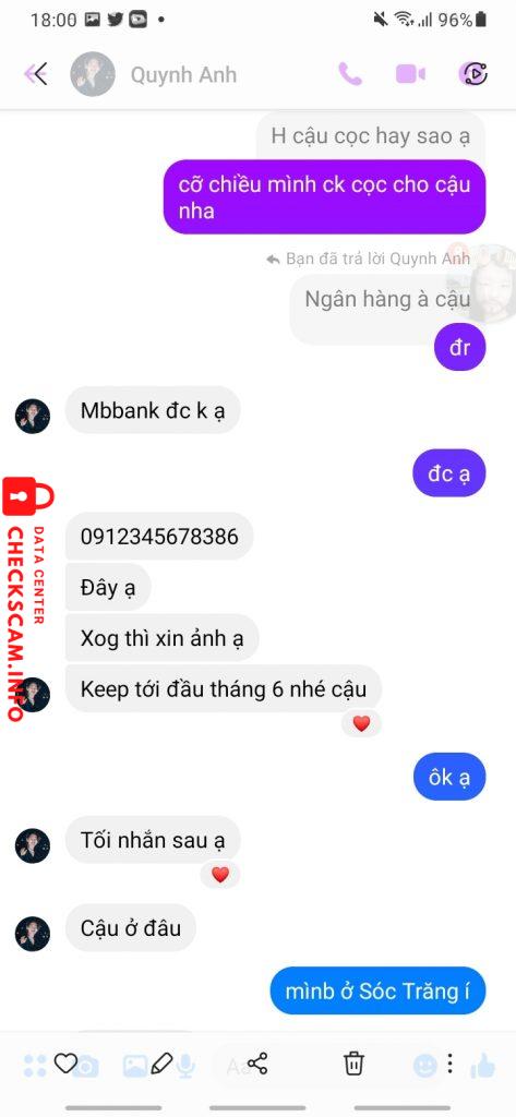 Cảnh báo kẻ lừa đảo: Nguyễn Quynh Anh Đã báo cáo: November 16, 2024 Thông tin kẻ lừa đảo Họ và tên: Nguyễn Quynh Anh Cổng thanh toán: MB bank Tài khoản thanh toán: 0912345678386 Danh mục: Lừa đảo mua bán Nguồn: Checkscam Tệp bằng chứng Mô tả báo cáo Scam card Bình luận Bình luận của bạn Thêm bình luận Chưa có bình luận nào. Hãy là người đầu tiên chia sẻ kinh nghiệm của bạn với kẻ lừa đảo này.