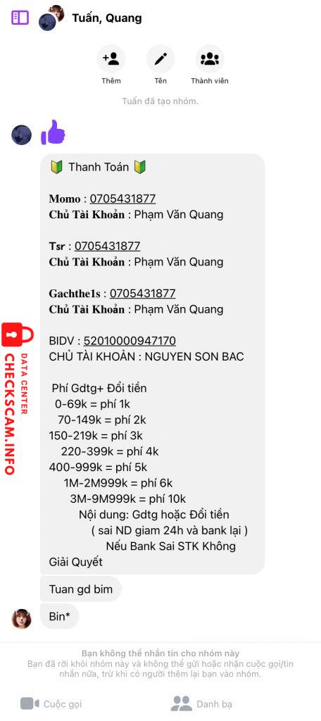 Thông tin kẻ lừa đảo