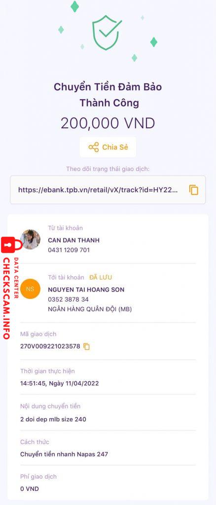Cảnh báo kẻ lừa đảo: Nguyễn Tài Hoàng Sơn Đã báo cáo: November 16, 2024 Thông tin kẻ lừa đảo Họ và tên: Nguyễn Tài Hoàng Sơn Cổng thanh toán: MB bank Tài khoản thanh toán: 0352387834 Danh mục: Lừa đảo mua bán Nguồn: Checkscam Tệp bằng chứng Mô tả báo cáo Lừa chuyển khoản cọc tiền dép MLB Bình luận Bình luận của bạn Thêm bình luận Chưa có bình luận nào. Hãy là người đầu tiên chia sẻ kinh nghiệm của bạn với kẻ lừa đảo này.