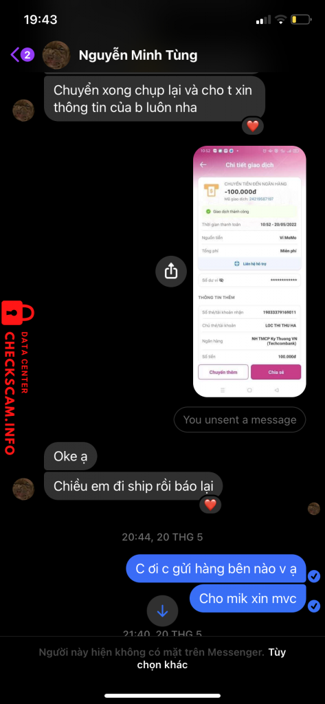 Tài khoản này có chủ fb Nguyễn Minh Tùng avatar mặt chó đã scam 4 người trong đó có mình hết 668k rồi mọi người cẩn thận( bạn đó có rất nhiều tài khoản ck nha)