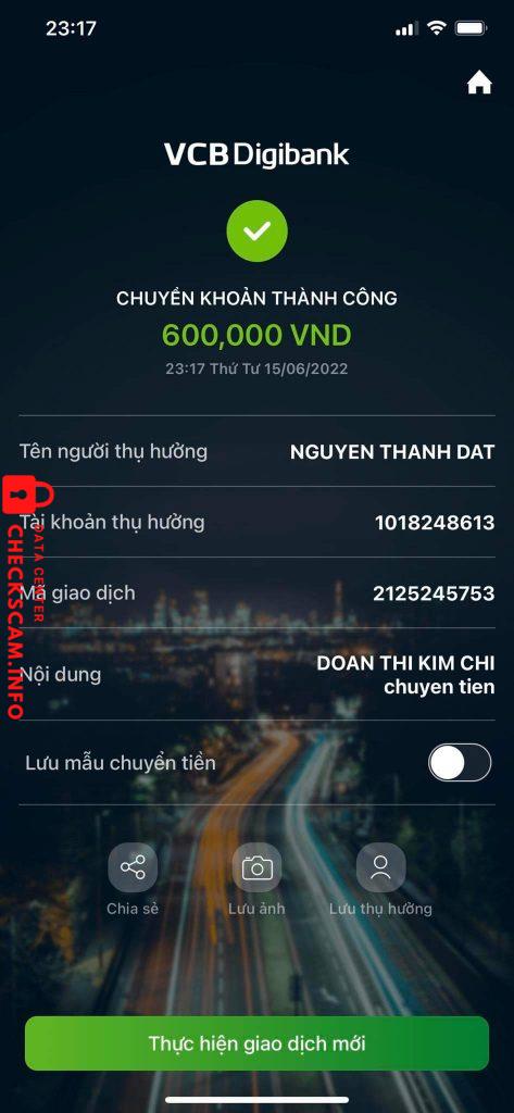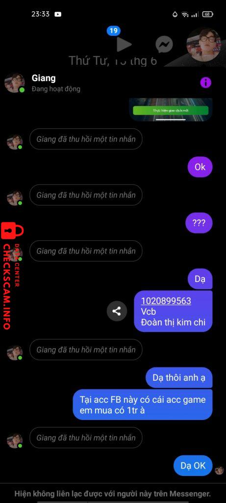 Cảnh báo kẻ lừa đảo: Nguyen thanh dat Đã báo cáo: November 16, 2024 Thông tin kẻ lừa đảo Họ và tên: Nguyen thanh dat Cổng thanh toán: Vietcombank Tài khoản thanh toán: 1018248613 Danh mục: Lừa đảo mua bán Nguồn: Checkscam Tệp bằng chứng Mô tả báo cáo Lừa đảo chiếm đoạt tài sản Bình luận Bình luận của bạn Thêm bình luận Chưa có bình luận nào. Hãy là người đầu tiên chia sẻ kinh nghiệm của bạn với kẻ lừa đảo này.
