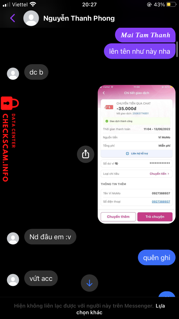 Cảnh báo kẻ lừa đảo: Nguyen Thanh Phong