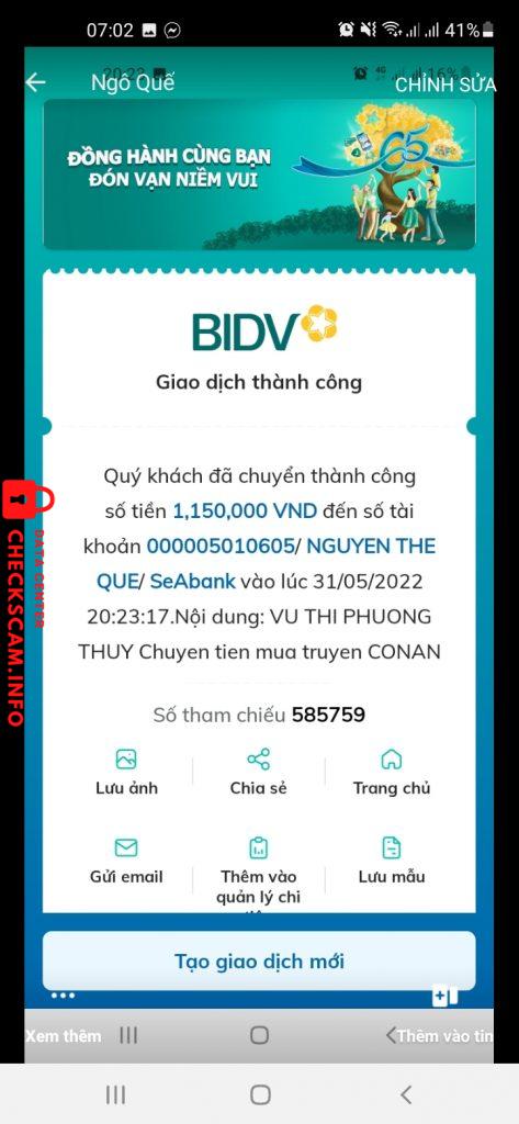 Cảnh báo kẻ lừa đảo: NGUYEN THE QUE