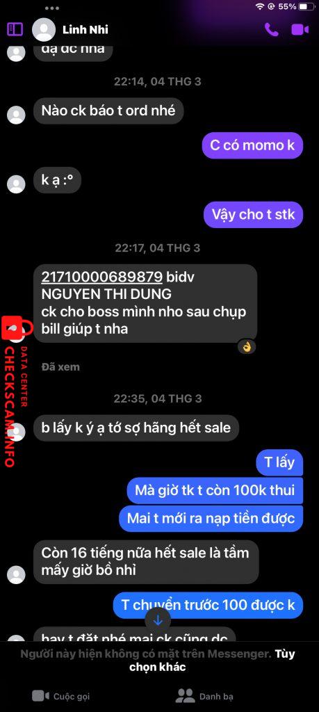 Cảnh báo kẻ lừa đảo: Nguyen Thi Dung Đã báo cáo: November 16, 2024 Thông tin kẻ lừa đảo Họ và tên: Nguyen Thi Dung Cổng thanh toán: BIDV Tài khoản thanh toán: 21710000689879 Danh mục: Lừa đảo mua bán Nguồn: Checkscam Tệp bằng chứng Mô tả báo cáo Nhận tiền cọc xong khóa/xóa acc, không liên lạc được Bình luận Bình luận của bạn Thêm bình luận Chưa có bình luận nào. Hãy là người đầu tiên chia sẻ kinh nghiệm của bạn với kẻ lừa đảo này.