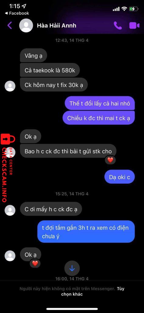 Cảnh báo kẻ lừa đảo: Nguyễn Thị Hoài Ngọc Đã báo cáo: November 16, 2024 Thông tin kẻ lừa đảo Họ và tên: Nguyễn Thị Hoài Ngọc Cổng thanh toán: MB Bank Tài khoản thanh toán: 2205091401 Danh mục: Lừa đảo mua bán Nguồn: Checkscam Tệp bằng chứng Mô tả báo cáo scam card taekook khò tại group Bình luận Bình luận của bạn Thêm bình luận Chưa có bình luận nào. Hãy là người đầu tiên chia sẻ kinh nghiệm của bạn với kẻ lừa đảo này.