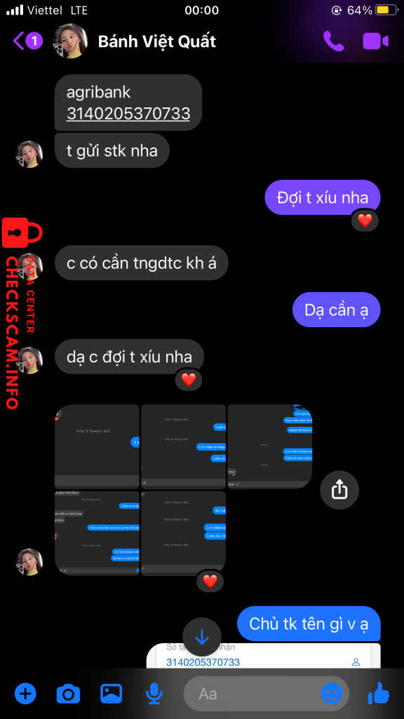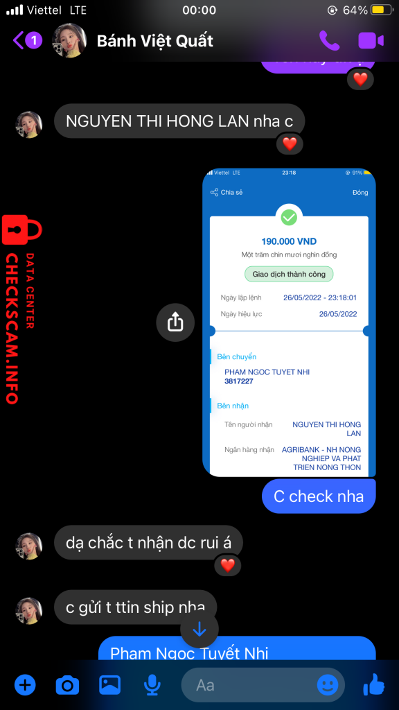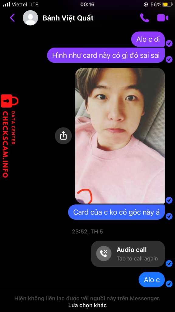 Cảnh báo kẻ lừa đảo: NGUYEN THI HONG LAN Đã báo cáo: November 16, 2024 Thông tin kẻ lừa đảo Họ và tên: NGUYEN THI HONG LAN Cổng thanh toán: Agribank Tài khoản thanh toán: 3140205370733 Danh mục: Lừa đảo mua bán Nguồn: Checkscam Tệp bằng chứng Mô tả báo cáo Bán card giả (unoff) Bình luận Bình luận của bạn Thêm bình luận Chưa có bình luận nào. Hãy là người đầu tiên chia sẻ kinh nghiệm của bạn với kẻ lừa đảo này.