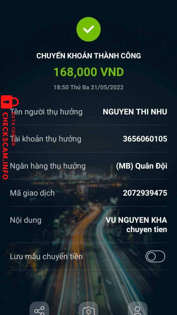 Cảnh báo kẻ lừa đảo: NGUYEN THI NHU Đã báo cáo: November 16, 2024 Thông tin kẻ lừa đảo Họ và tên: NGUYEN THI NHU Cổng thanh toán: MB Bank Tài khoản thanh toán: 3656060105 Danh mục: Lừa đảo mua bán Nguồn: Checkscam Tệp bằng chứng Mô tả báo cáo Scam tiền truyện Bình luận Bình luận của bạn Thêm bình luận Chưa có bình luận nào. Hãy là người đầu tiên chia sẻ kinh nghiệm của bạn với kẻ lừa đảo này.