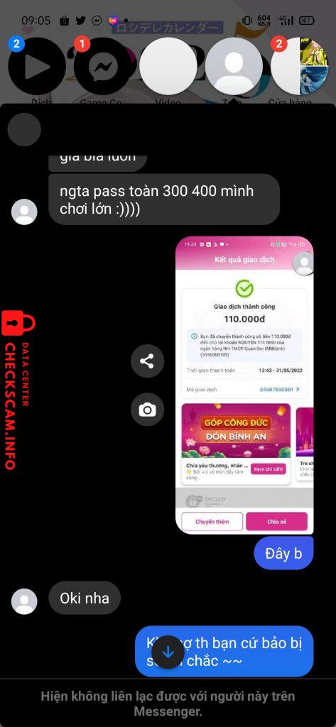 Cảnh báo kẻ lừa đảo: Nguyen Thi Nhu Đã báo cáo: November 16, 2024 Thông tin kẻ lừa đảo Họ và tên: Nguyen Thi Nhu Cổng thanh toán: MB bank Tài khoản thanh toán: 3656060105 Danh mục: Lừa đảo mua bán Nguồn: Checkscam Tệp bằng chứng Mô tả báo cáo Scammer Bình luận Bình luận của bạn Thêm bình luận Chưa có bình luận nào. Hãy là người đầu tiên chia sẻ kinh nghiệm của bạn với kẻ lừa đảo này.