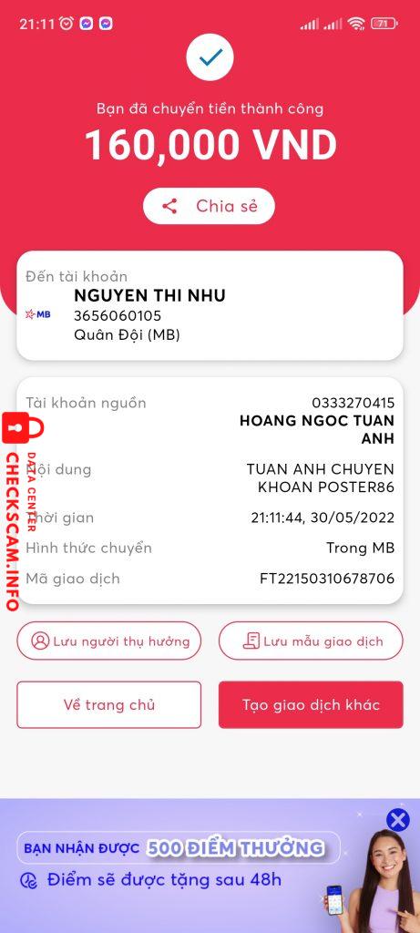 Cảnh báo kẻ lừa đảo: Nguyễn Thị Như Đã báo cáo: November 16, 2024 Thông tin kẻ lừa đảo Họ và tên: Nguyễn Thị Như Cổng thanh toán: MB Bank Tài khoản thanh toán: 3656060105 Danh mục: Lừa đảo mua bán Nguồn: Checkscam Tệp bằng chứng Mô tả báo cáo Sau có ai thấy Stk này né nhé cả ổ bị scam rồi ai rảnh thì tham gia tìm nó giúp với. Sợ tới lúc tìm được nó chếc rồi thì khổ mấy ae bị scam lắm. Bình luận Bình luận của bạn Thêm bình luận Chưa có bình luận nào. Hãy là người đầu tiên chia sẻ kinh nghiệm của bạn với kẻ lừa đảo này.