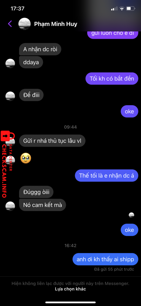Cảnh báo kẻ lừa đảo: NGUYEN THI PHUONG Đã báo cáo: November 16, 2024 Thông tin kẻ lừa đảo Họ và tên: NGUYEN THI PHUONG Cổng thanh toán: MB Bank Tài khoản thanh toán: 130106100206 Danh mục: Lừa đảo mua bán Nguồn: Checkscam Tệp bằng chứng Mô tả báo cáo Lừa đảo tiền:)) Bình luận Bình luận của bạn Thêm bình luận Chưa có bình luận nào. Hãy là người đầu tiên chia sẻ kinh nghiệm của bạn với kẻ lừa đảo này.
