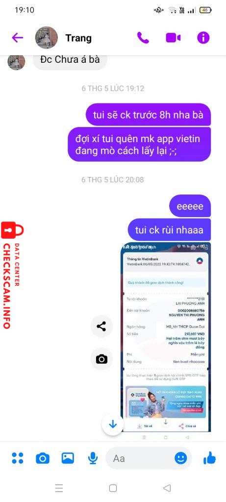 Cảnh báo kẻ lừa đảo: NGUYEN THI PHUONG ANH