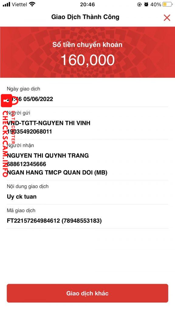 Cảnh báo kẻ lừa đảo: Nguyễn Thị Quỳnh Trang