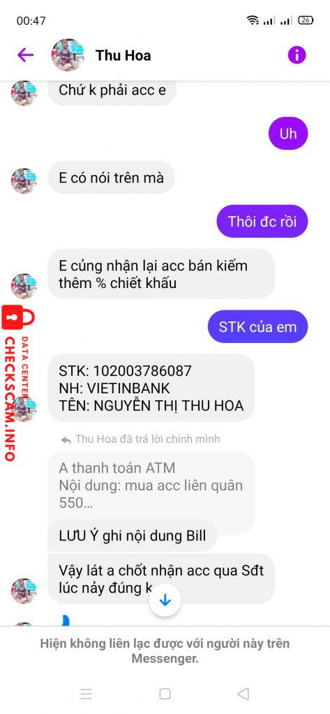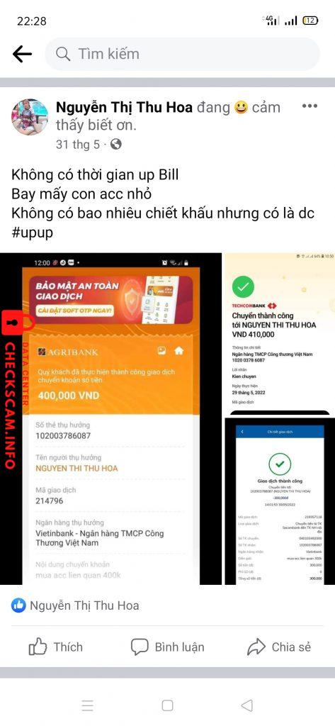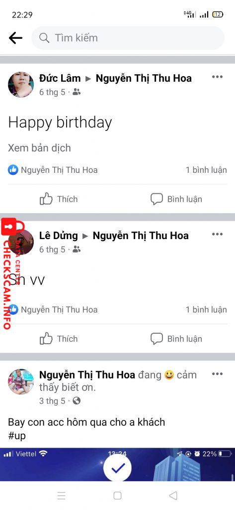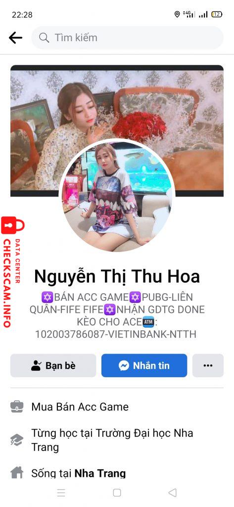 Cảnh báo kẻ lừa đảo: Nguyễn Thị Thu Hoa