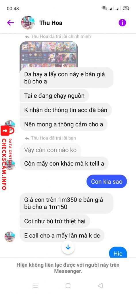 Cảnh báo kẻ lừa đảo: Nguyễn Thị Thu Hoa