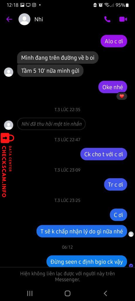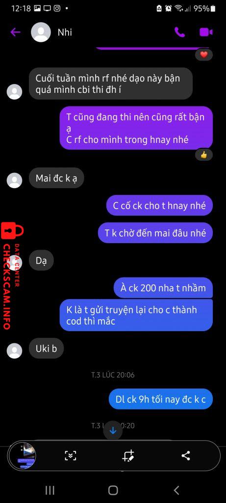 Nhi nhương cho tôi quyển truyện có giá 200k. Đó là bản giới hạn, nhưng khi hàng về lại là 2q bản thường giá 60k. Tôi yêu cầu chuyển khoản lại nhưng lại nhây. Có 1 team của Nhi cũng chuyên lừa đảo